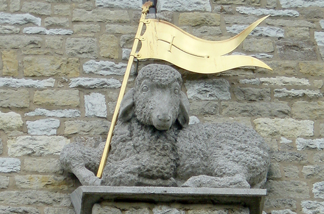 Die Lammplastik ist 25 Zentner schwer und besteht aus Muschelkalksandstein. Im Jahr 1996 wurde die Fahne von Restaurator Gerd F. Tippel vergoldet. 2003 erfolgte eine behutsame Grundreinigung von Staub und Schmutz, der sich vor allem durch die Nähe zum Berliner Ring abgelagert hatte.
