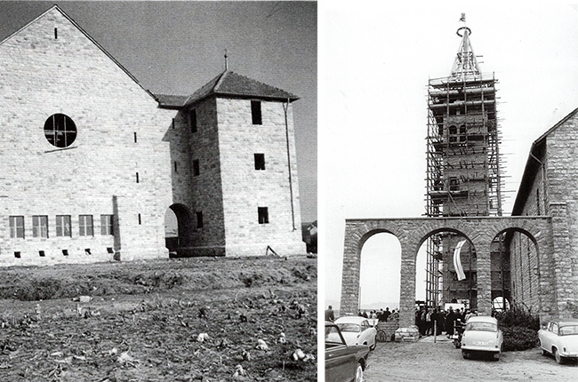 Auferstehungskirche mit Turm und Pfarrhaus Grundstein der AuferstehungskircheBau der AuferstehungskircheFestzug zur KirchenweiheKirchweihgottesdienstDer Kirchturm links vor und rechts nach dem WeiterbauGlockenweiheTotengedenkstätteEingangsportal und TürgriffeDie Lammplastik am Ostgiebel